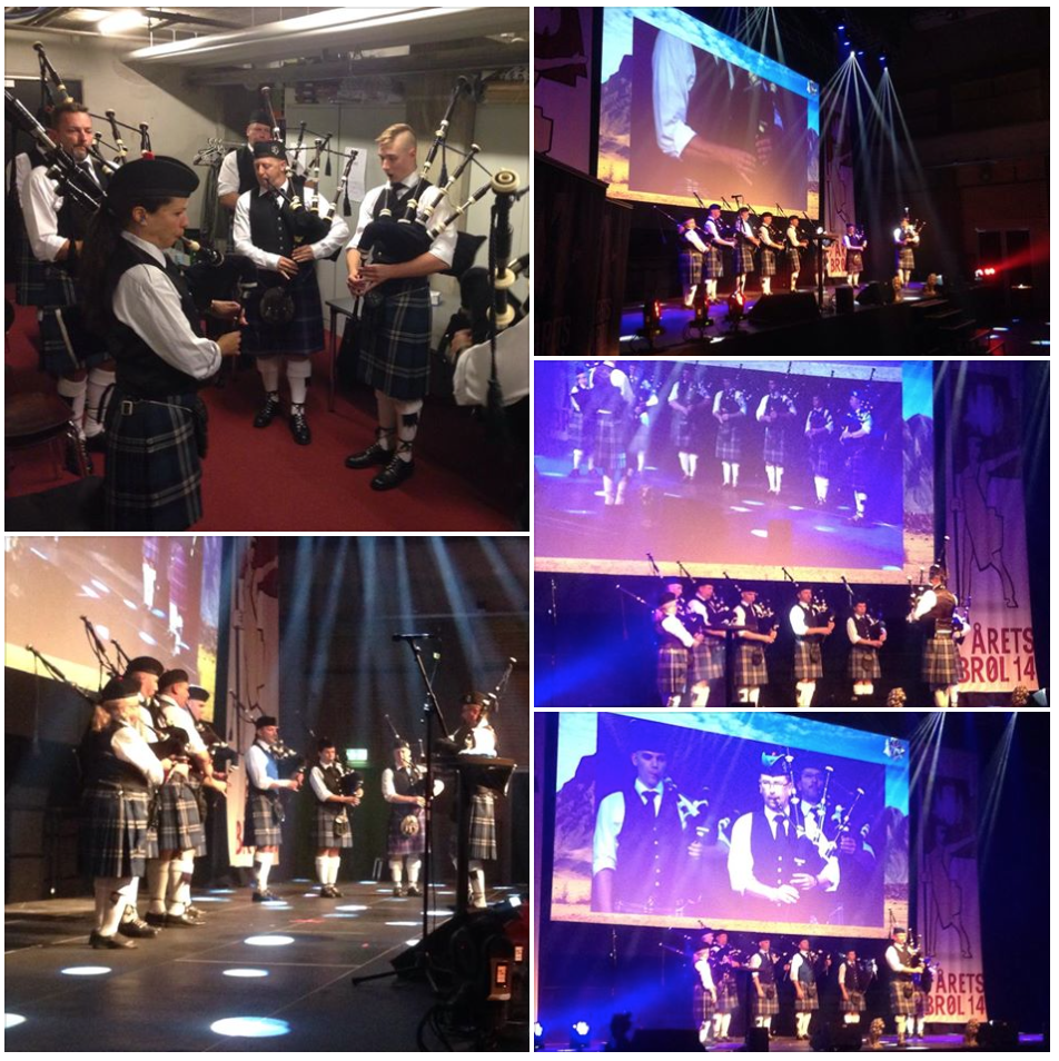 Fredag d. 29/8-14 deltog 8 af os prisuddelingsfesten Årets Brøl i Nordkraft. Jeg tror jeg taler på alles vegne, når jeg siger, at alle var sat op til at gøre deres bedste, og det var da også med en god fornemmelse, at vi leverede numrene. Billederne viser lidt fra showet, hvor vi spillede i 2 omgange (rart med billeder, når man nu selv er så superfokuseret, at man ikke lægger mærke til sine omgivelser). Som det fremgår, var det et show, der var meget professionelt sat op med lys, storskærm, konferencier mv.. For flere af os, var det første gang vi har været i Nordkraft, og det hørte vel også med til at stemning, at vi stemte op i en overophedet garderobe, der med nød og næppe kunne rumme truppen. Det var således i mere end een forstand, at vi var “varmet op”, da vi kom på scenen. Der blev uddelt nogle bunker visitkort på vej ud, så lad os håbe, at det hele medfører noget mere opmærksomhed på bandet. Hovedparten af os fortsatte ned i byen til videre hygge på John Bull’s pub (der var sikkert nogen der kom sent hjem). Det var en rigtig hyggelig aften.